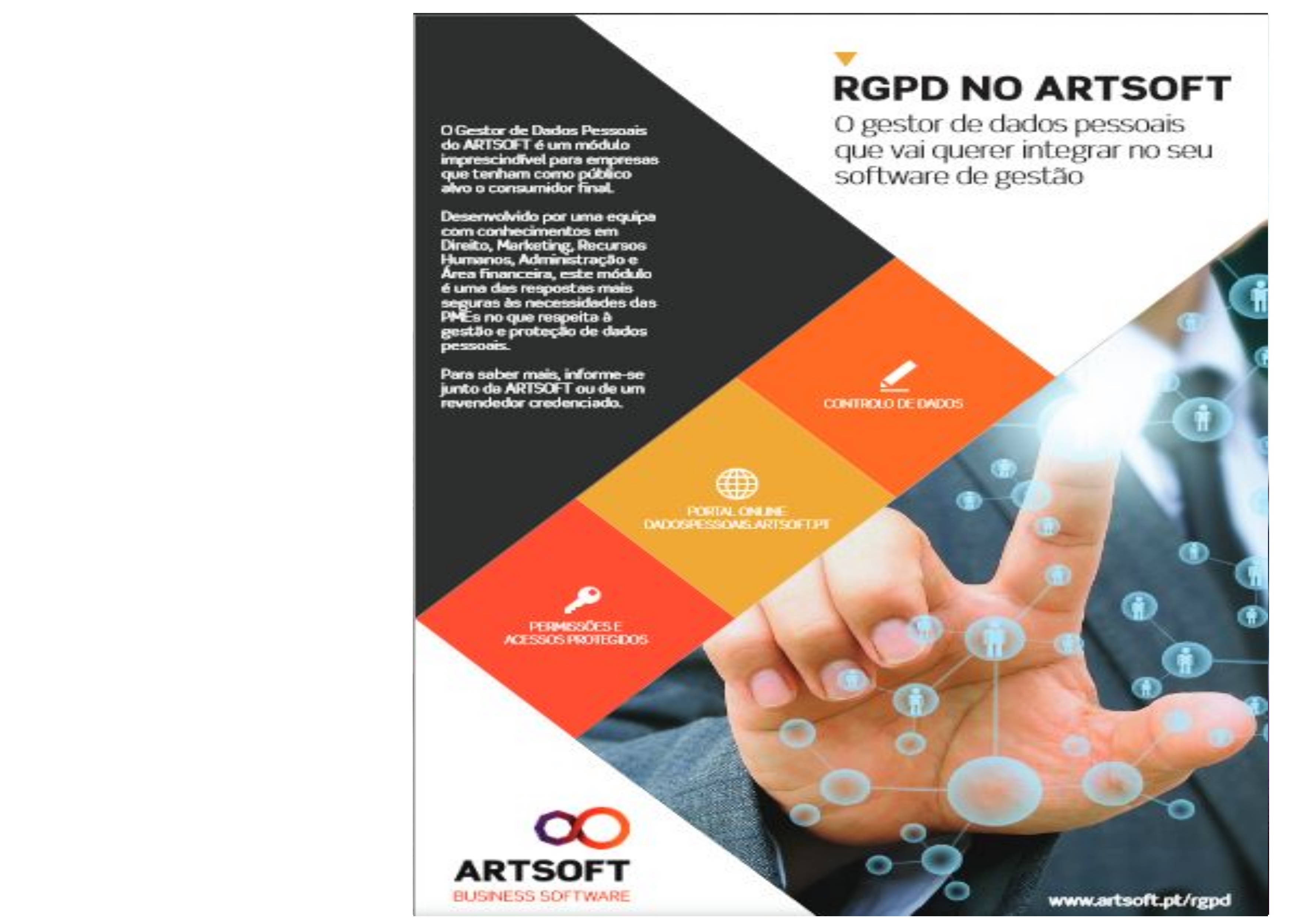 São várias as ações agora disponíveis no ARTSOFT para uma total gestão de dados pessoais. Cumpra na íntegra o RGPD, de forma fácil e eficiente.